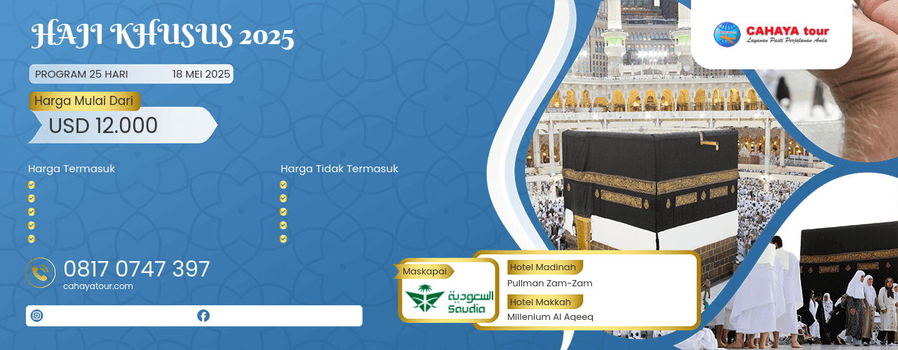 Cahaya Tour telah berpengalaman dalam memberangkatkan jamaah ibadah haji dan umrah. Kami sangat menjaga kepuasan dan kepercayaan jamaah dalam melaksanakan ibadah haji dan umrah.